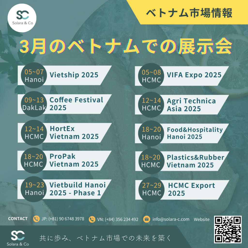 3月、ベトナム各地で開催される出店展示会は、現地市場を理解し、潜在的なパートナーや顧客とつながる絶好の機会です。