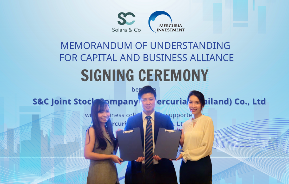 Solara & Coグループのベトナム法人であるS&CJointStockCompany(以下、「S&C」といいます。)は Mercuria(Thailand)Co.,Ltd.(以下、「MTC」といいます。)との間で資本参加および業務提携に関する覚書(MOU)を202581日付で締結いたしました。本提携においては、株式会社マーキュリアホールディングス(日本、以下「マーキュリア」といいます。)のグループ会社であるMercuria(Vietnam)Co.,Ltd.(以下、「MVNC」といいます。)より、現地業務のご支援をいただきます。