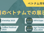 4月、ベトナム各地では多くの出店展示会が開催され、現地市場の最新動向をつかみ、将来のパートナーや顧客とのネットワークを築く絶好の機会となります。 ベトナム市場への参入をご検討中の企業様は、こうした展示会を活用し、現地での […]