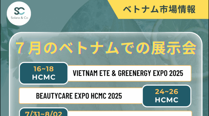3月、ベトナム各地で開催される出店展示会は、現地市場を理解し、潜在的なパートナーや顧客とつながる絶好の機会です。 ベトナム市場への参入をご検討中の企業様は、ぜひ出店展示会を活用し、現地でのブランド認知度を高め、ビジネスチ […]